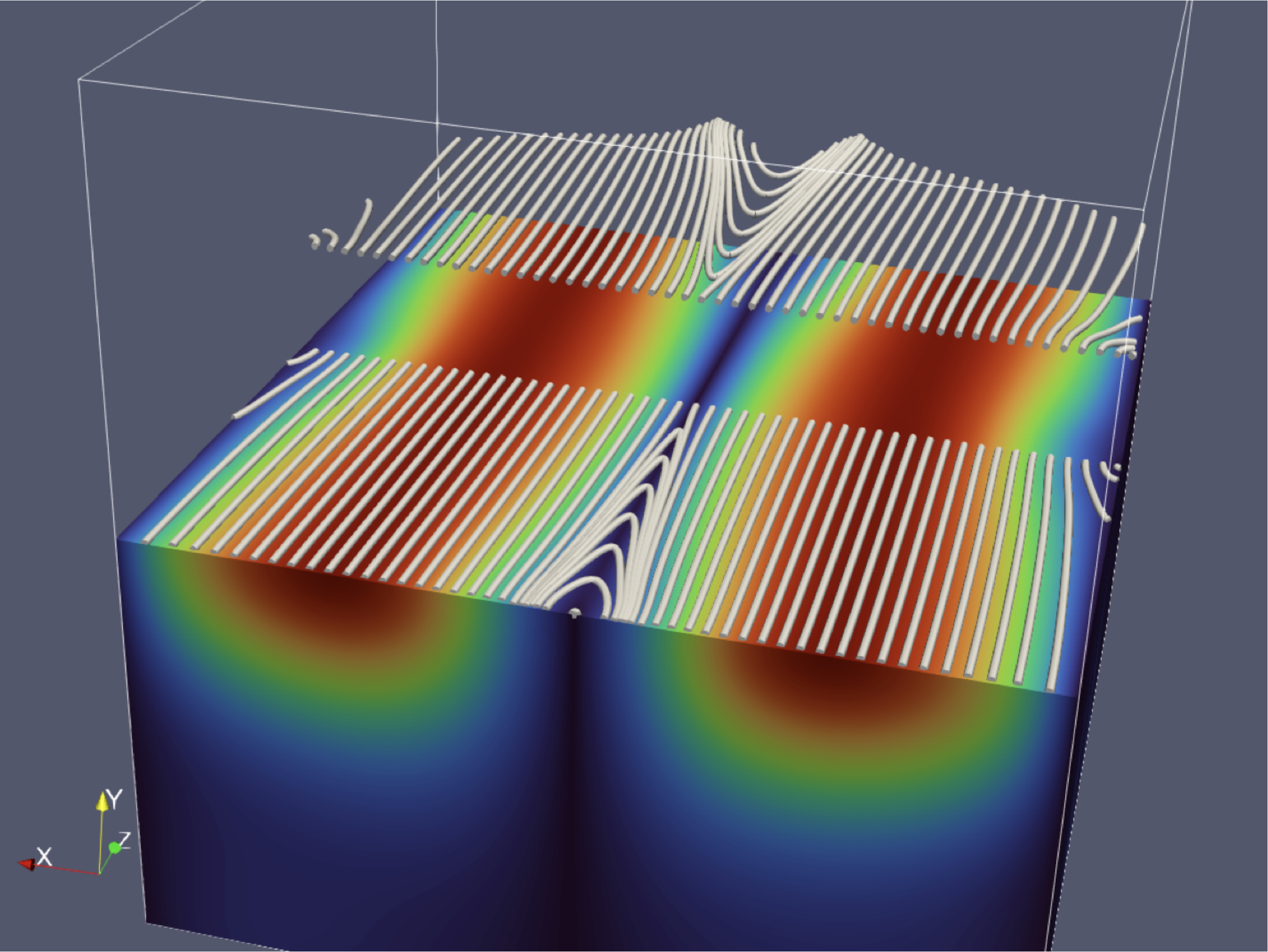 Currently, I am exploring magnetic reconnection in 3D by performing numerical experiments using MHD simulations. The movie below shows one such simulation.